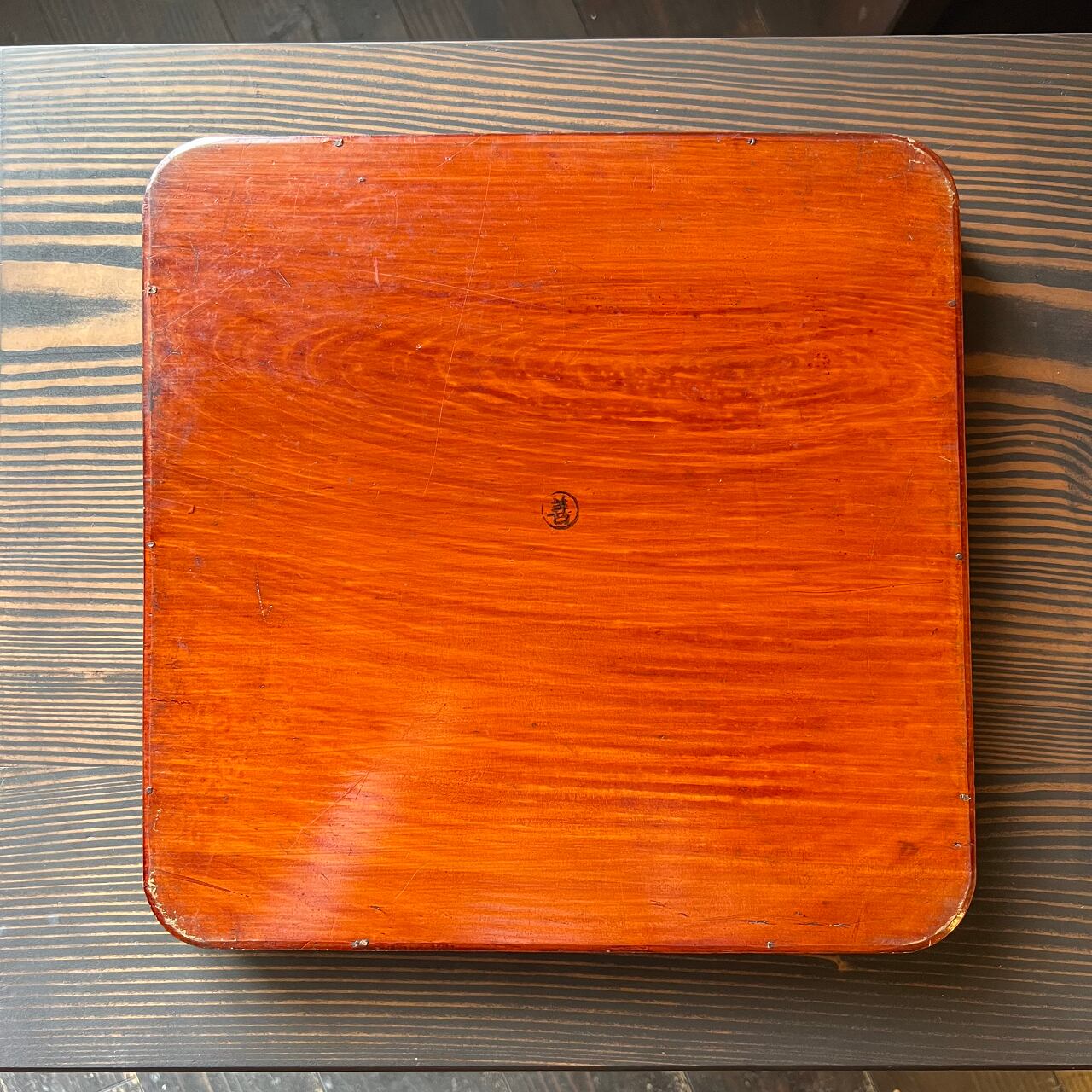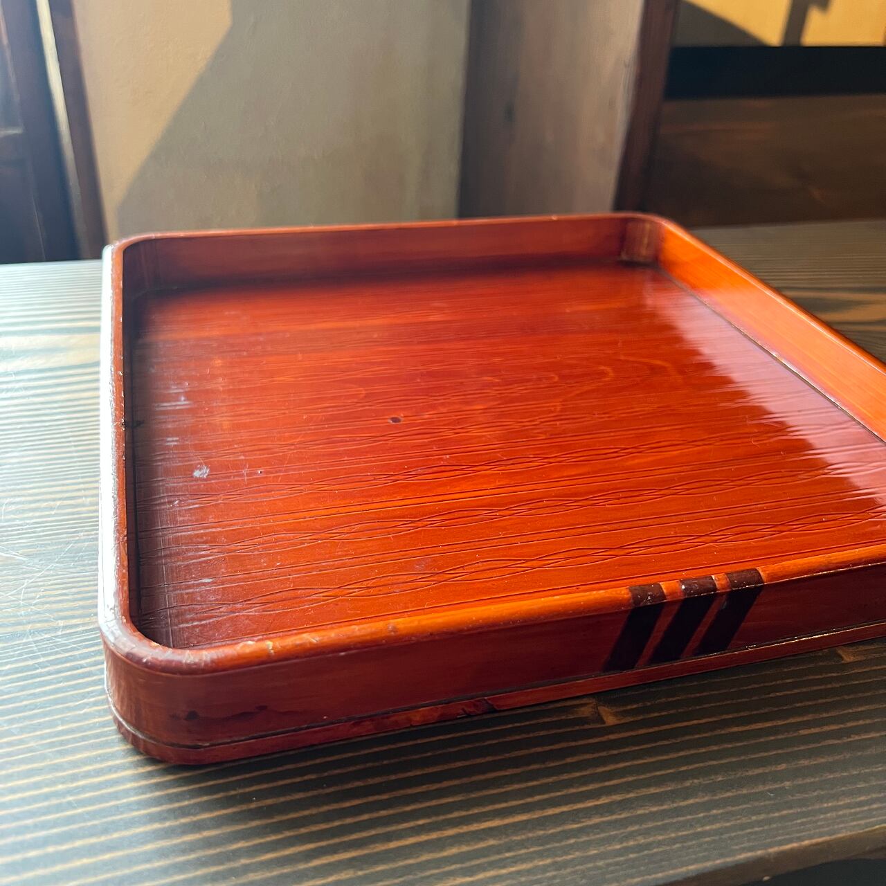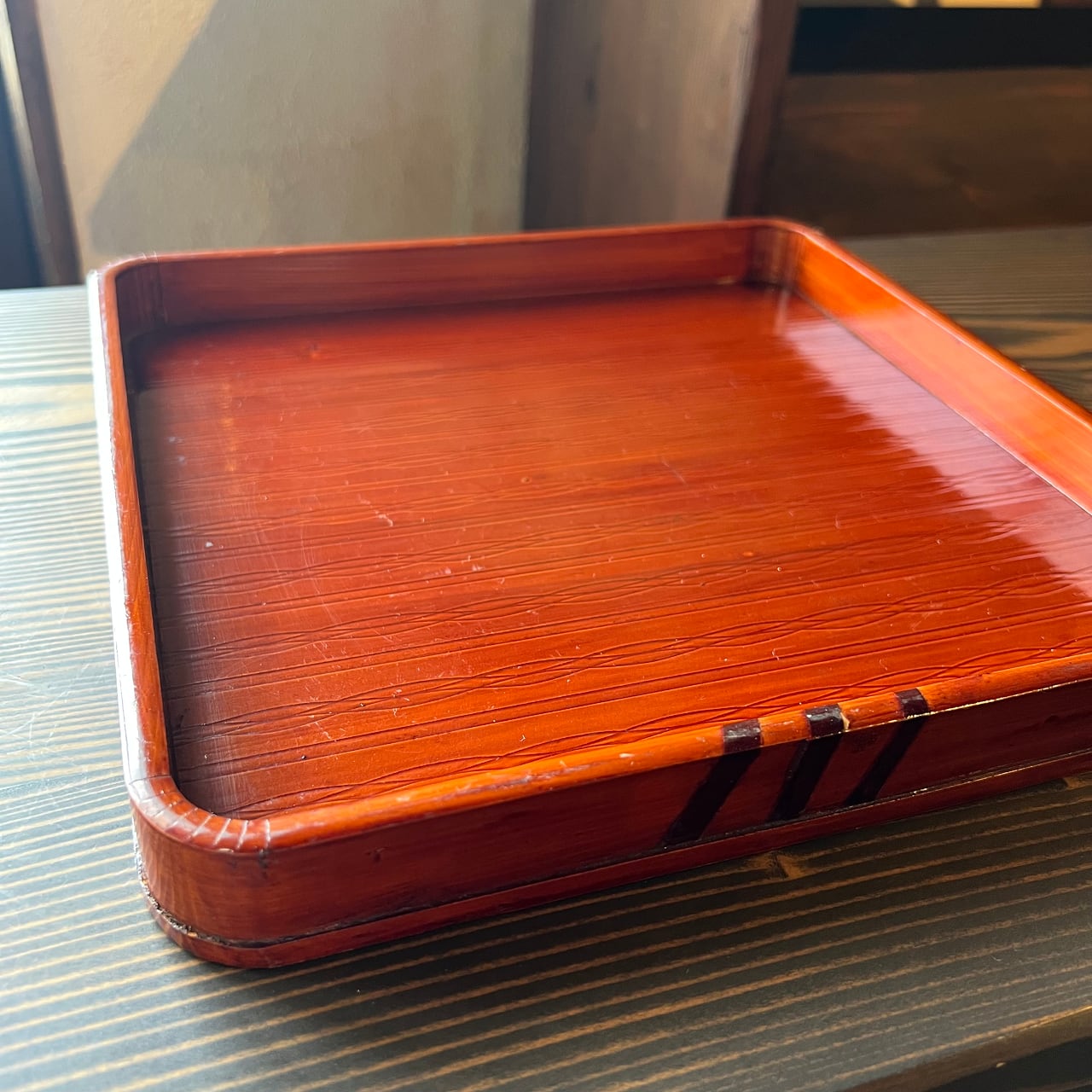 和柄の立湧模様に似た地模様が施されたアンティーク漆塗盆です。