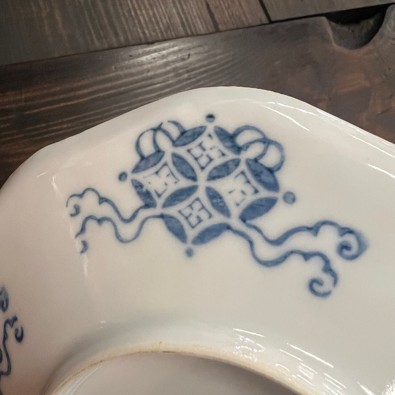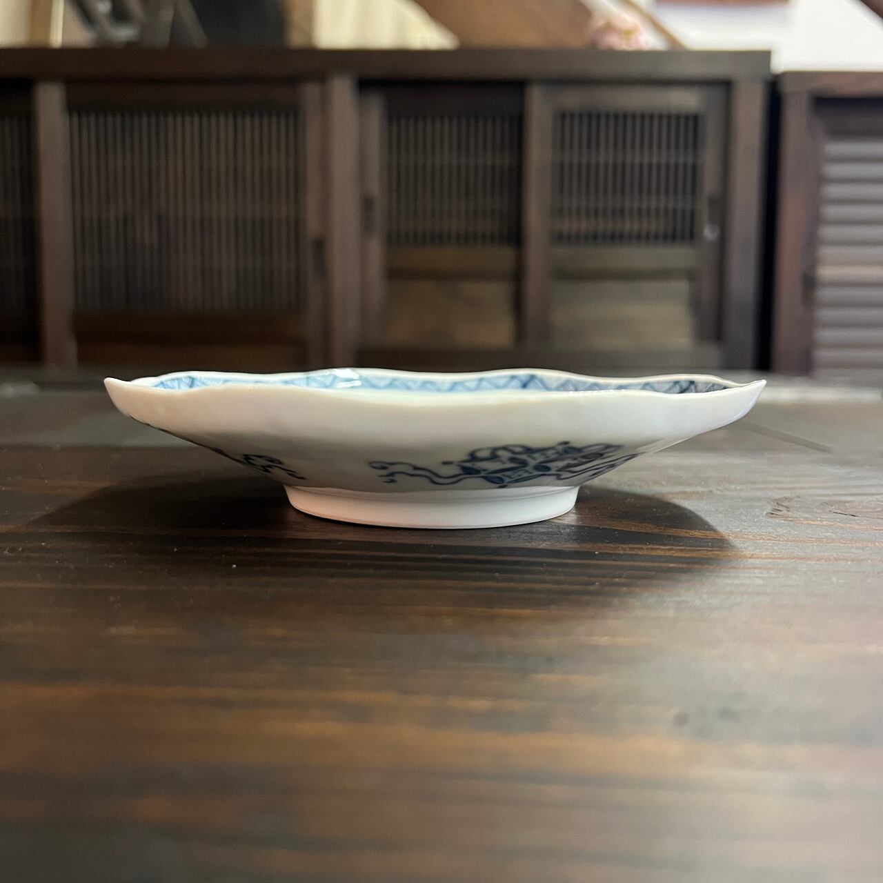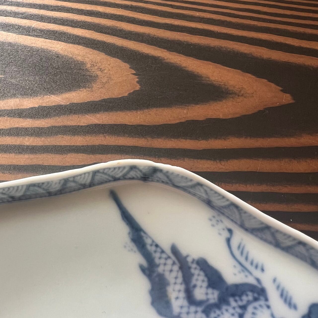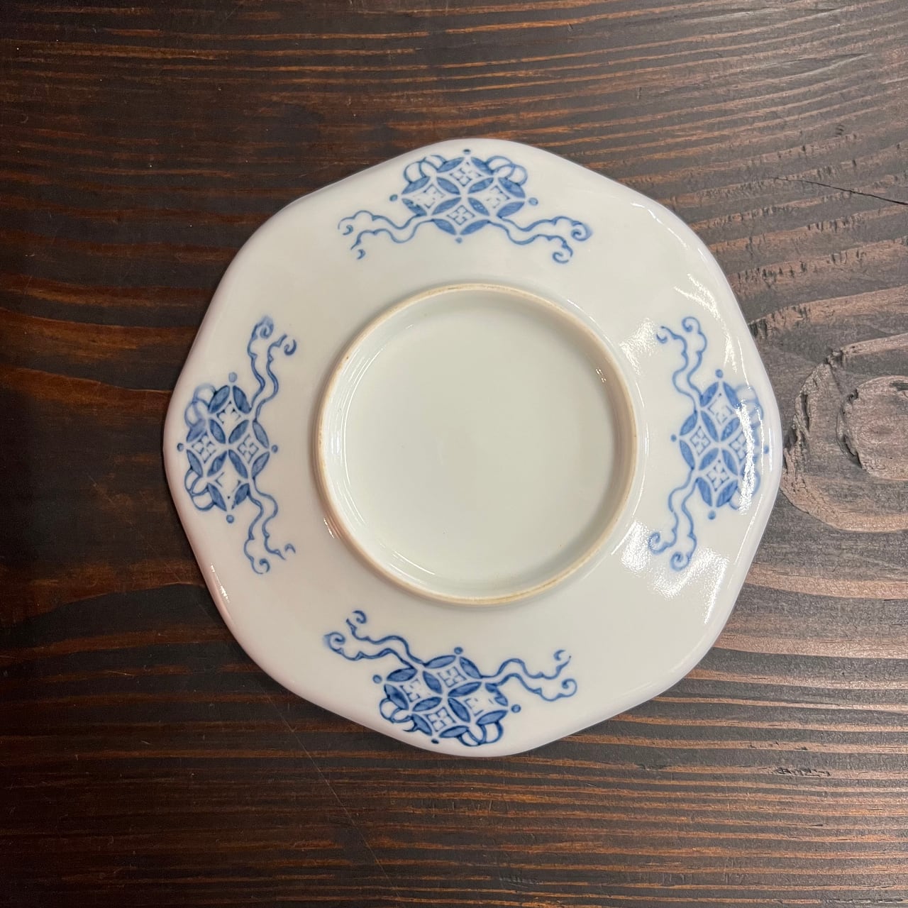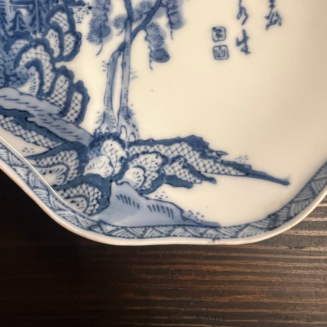青い松と五重塔の風景画が美しい、八角形のアンティーク絵皿です。