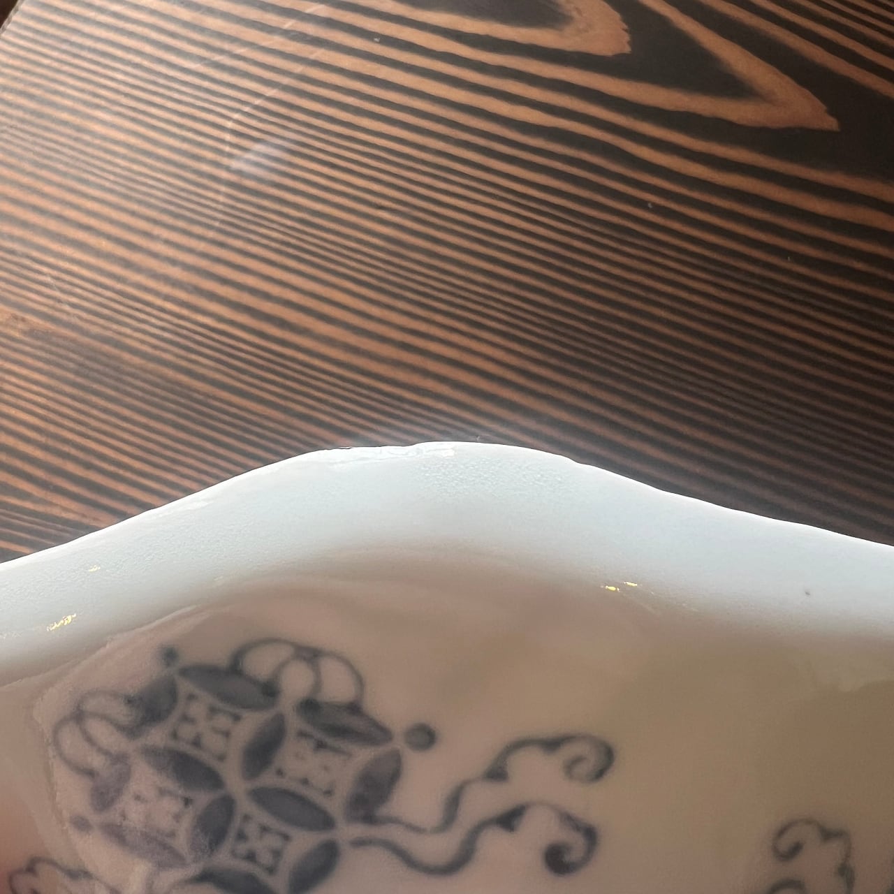 縁が薄く繊細なため、触れるとやや凹凸を感じ、ごく小さな欠けもあります。