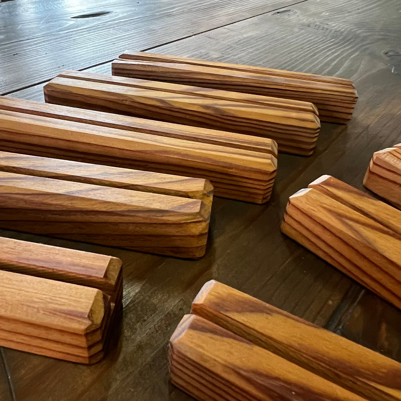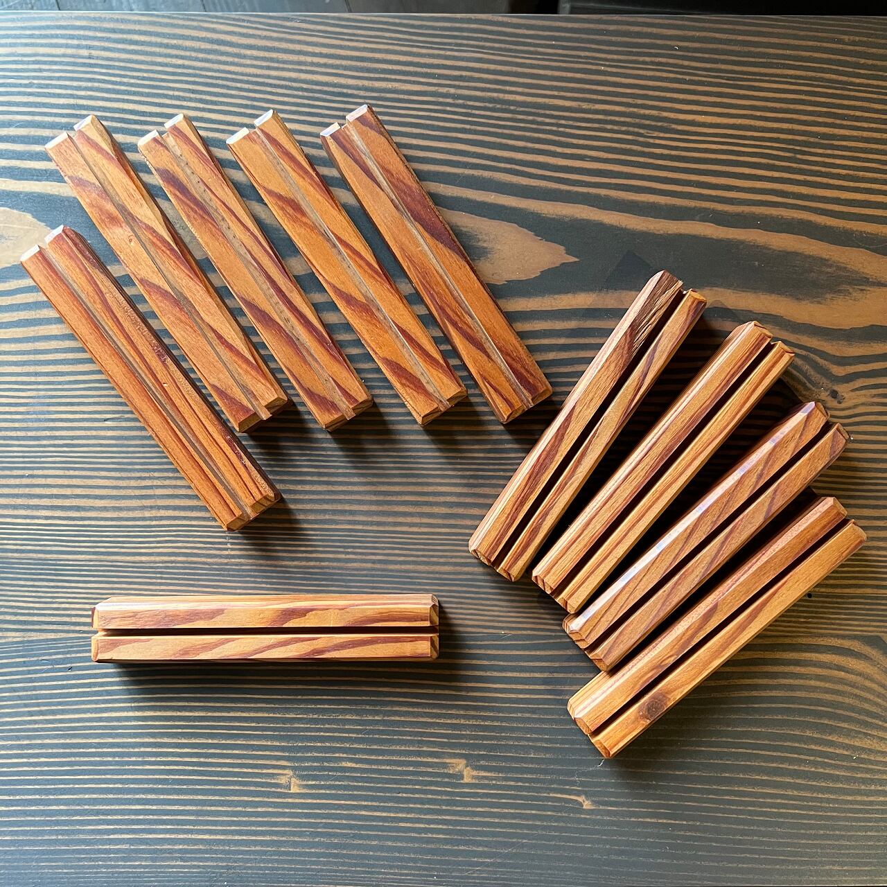 松の無垢材で重さ50~60gのため、どっしり感があります。