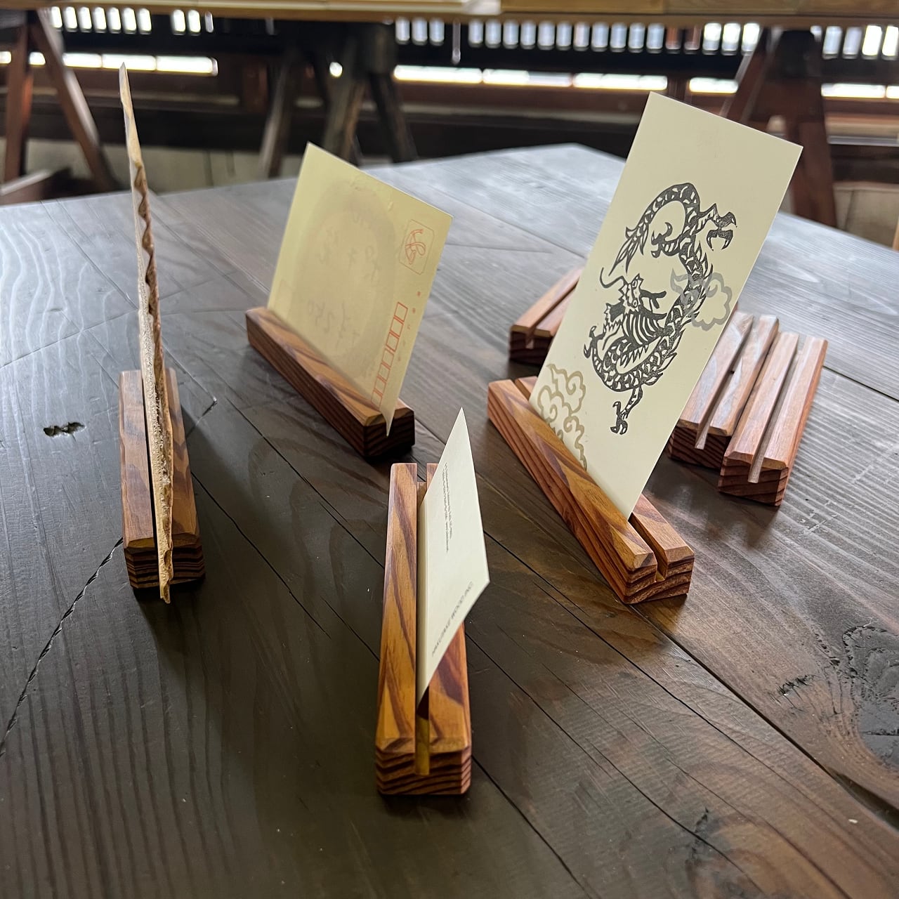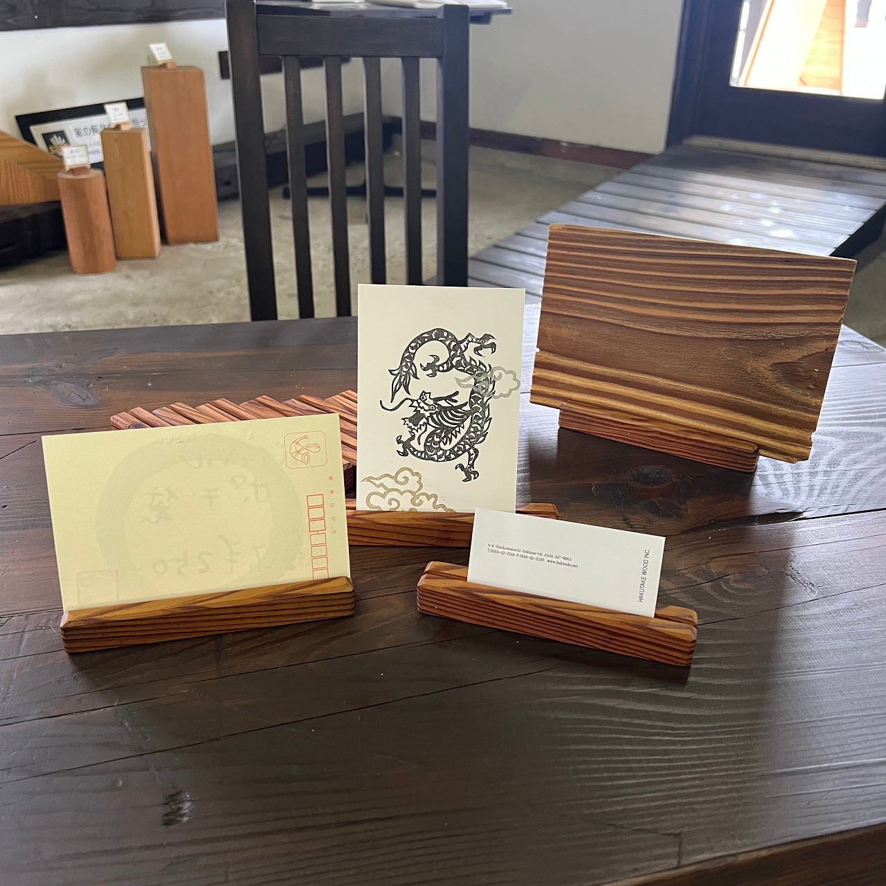 古材を利用して作った、郵便はがき長辺サイズの長さのカードスタンドです。