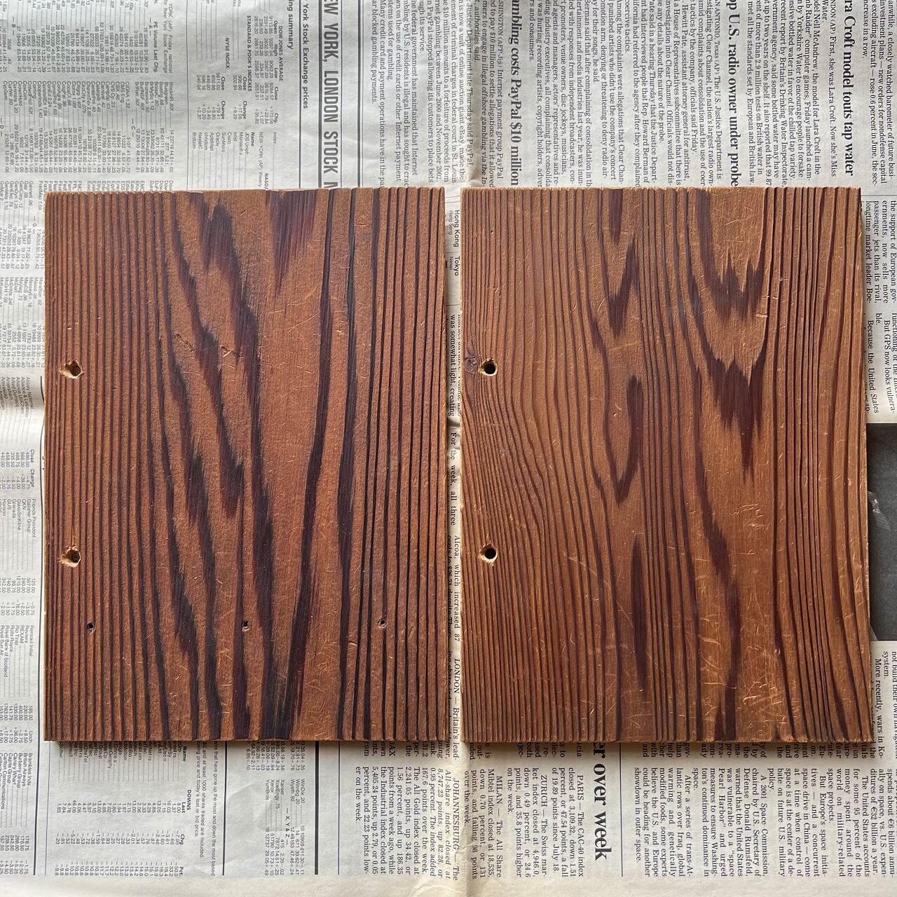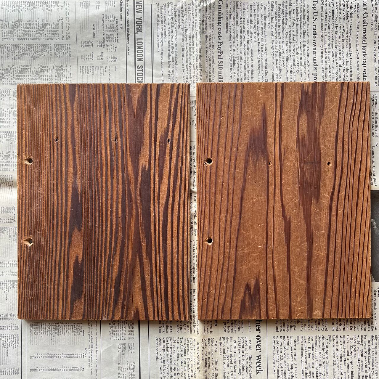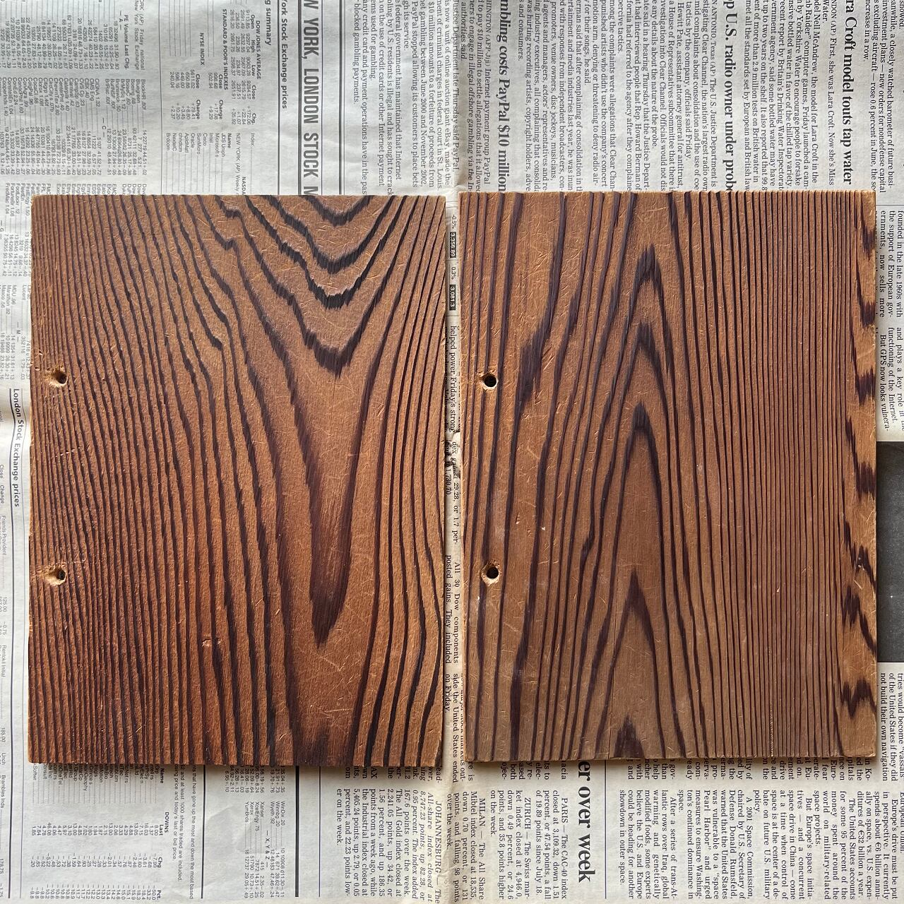 個体差はありますが、表面は木目が鮮明に際立ち、裏面は平らになっています。