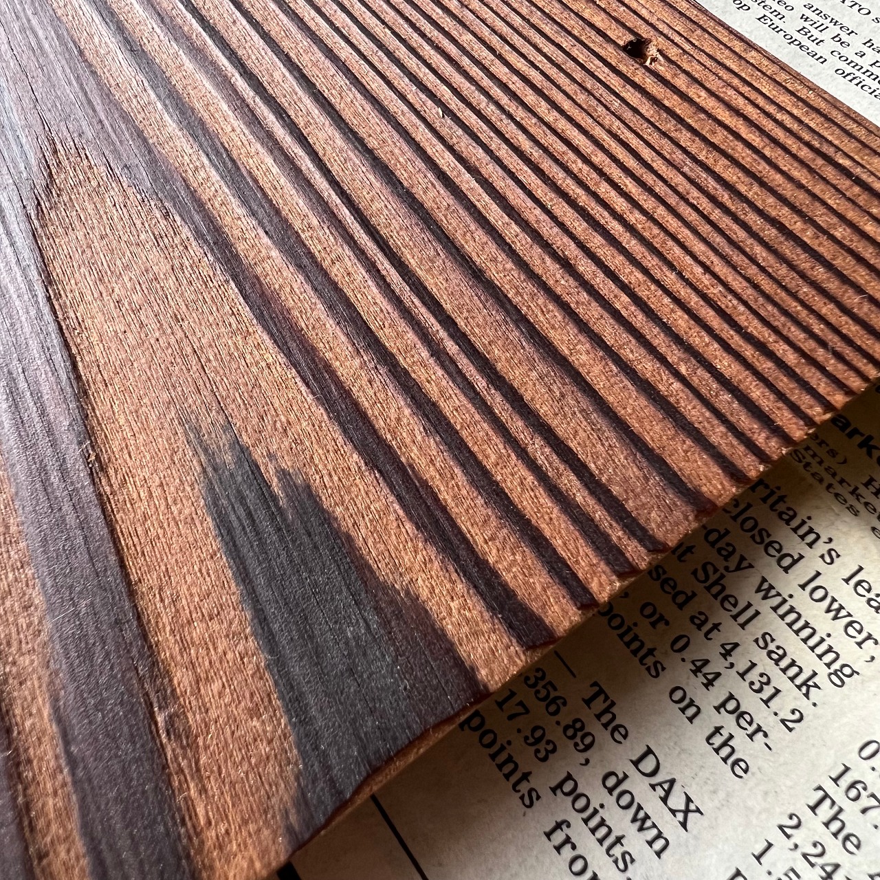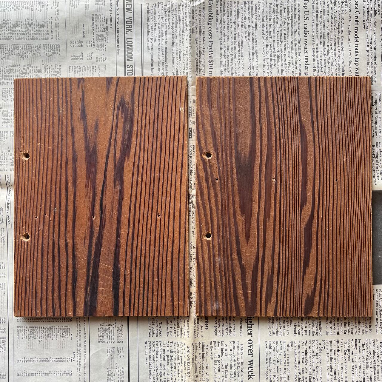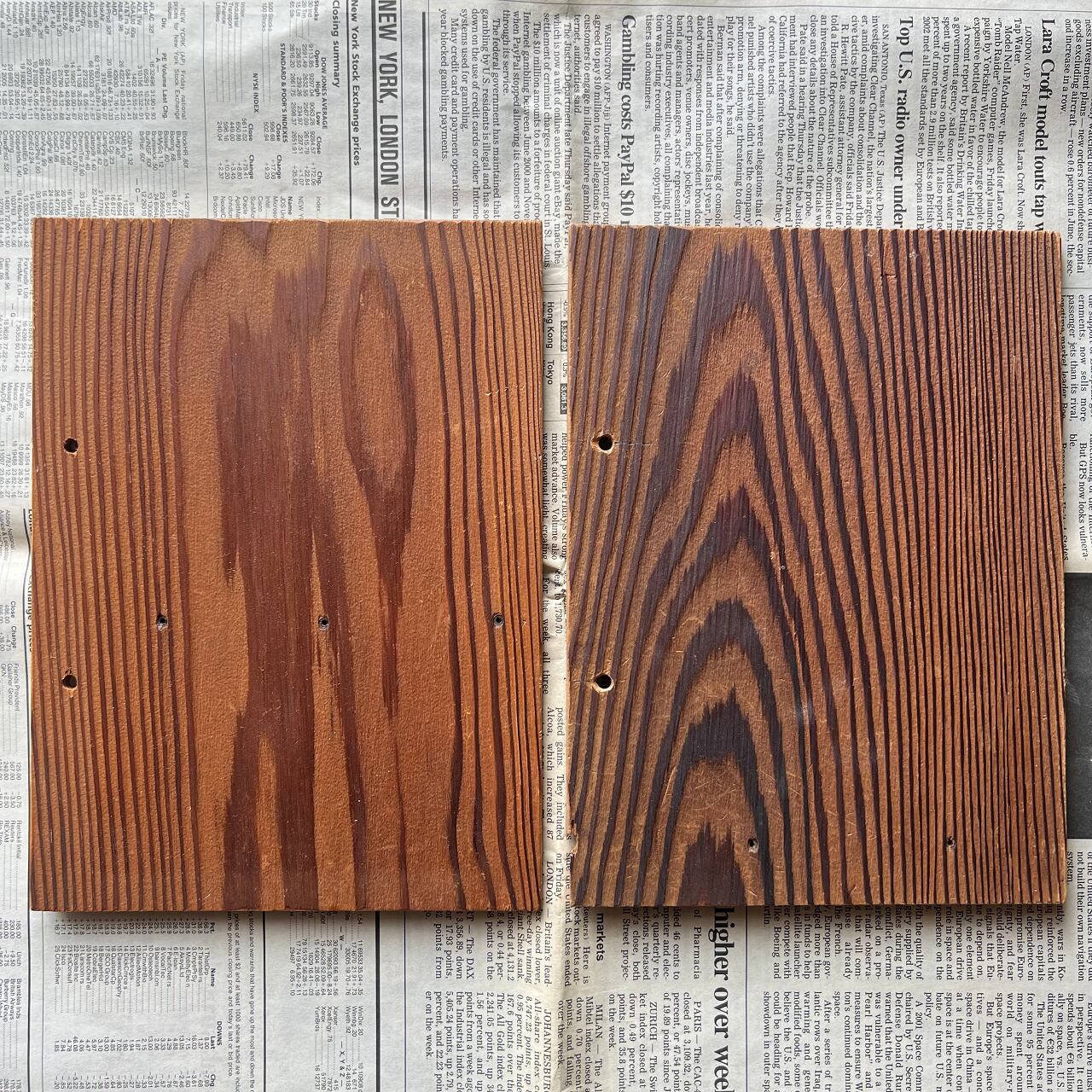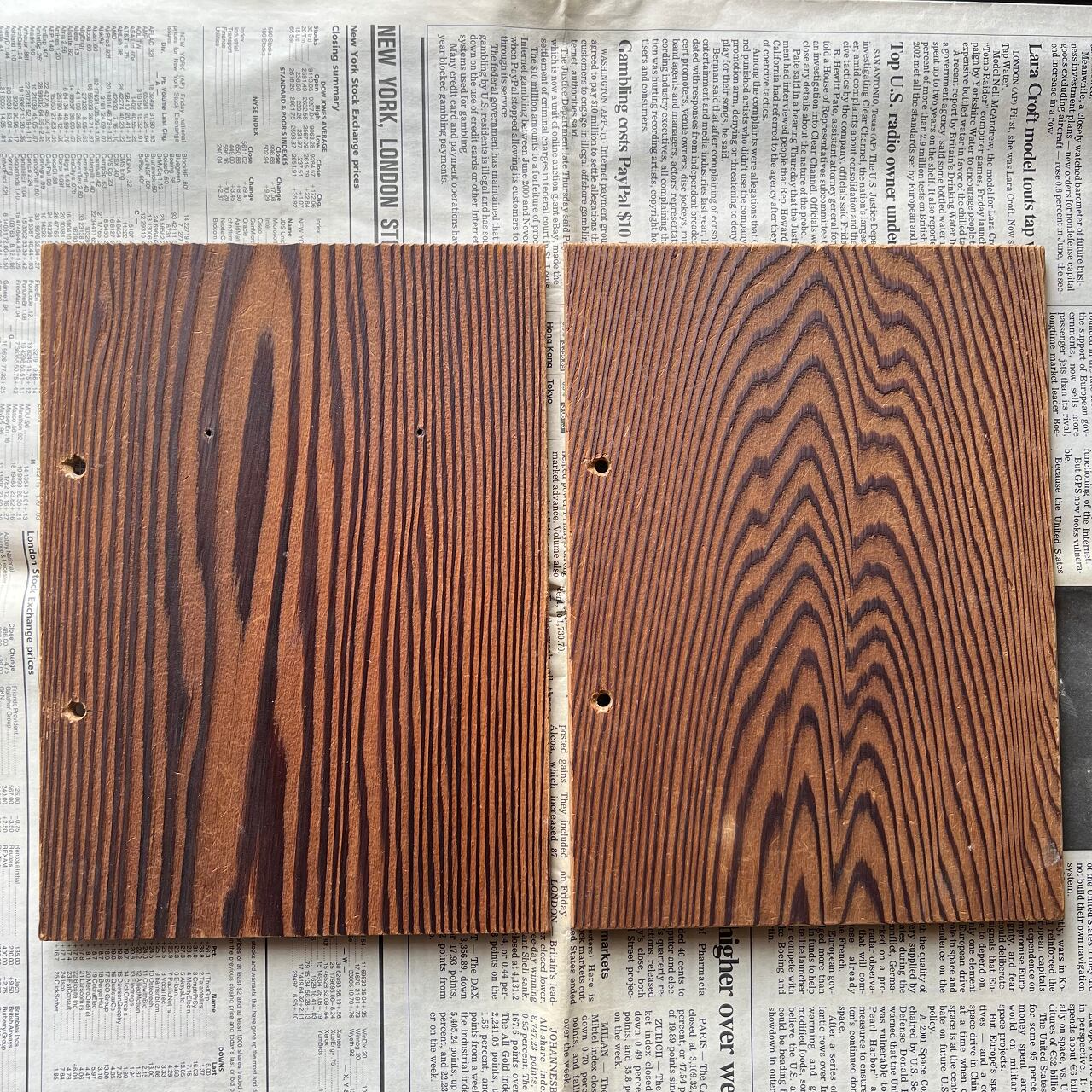 個体差はありますが、表面は木目が鮮明に際立ち、裏面は平らになっています。