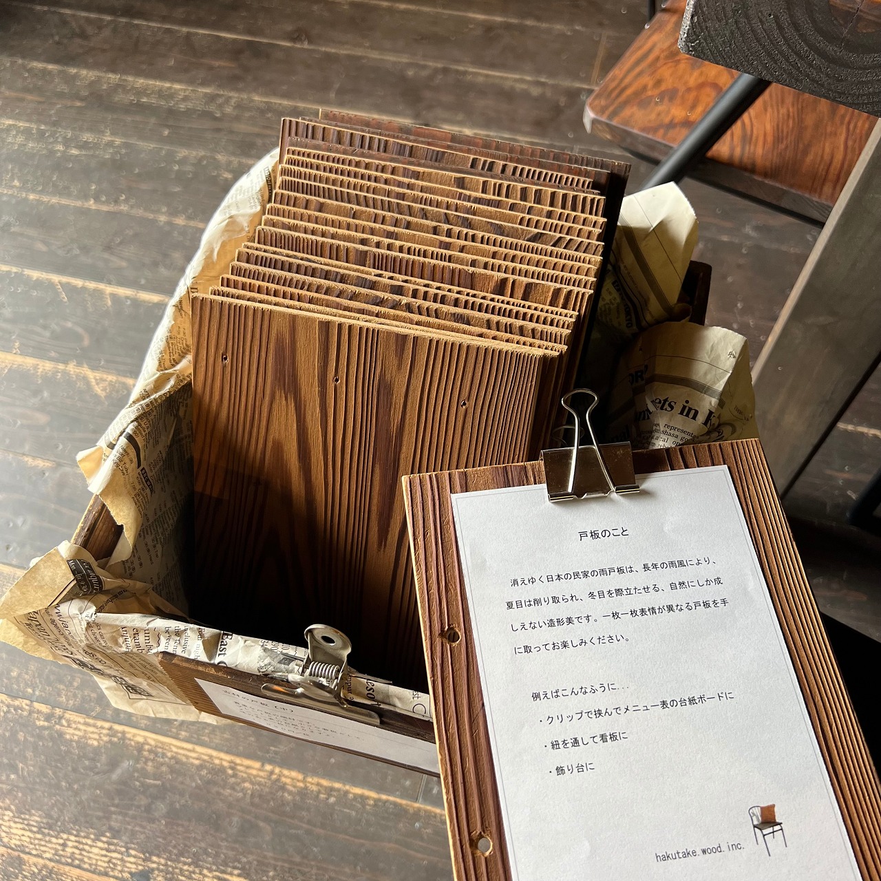 クリップで挟んでメニュー表の台紙に