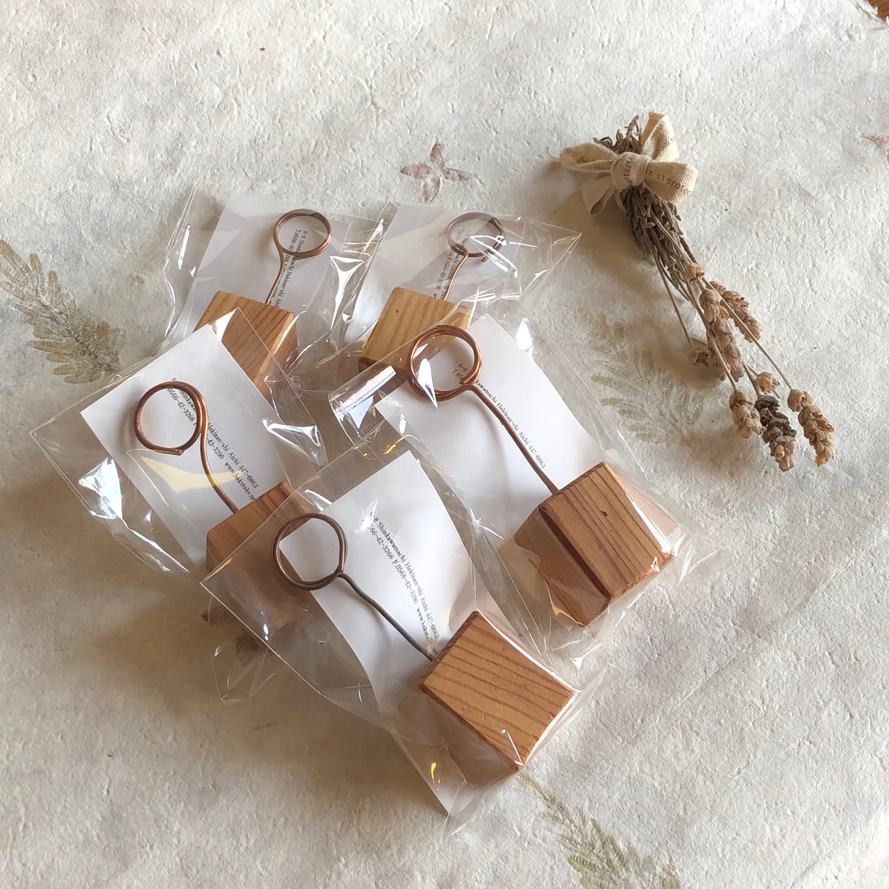 土台の大小、ワイヤーの太さ、曲げ方がすべて異なりますので、おりまぜて5個セットでお届けします。セット内容のご指定はご遠慮ください。