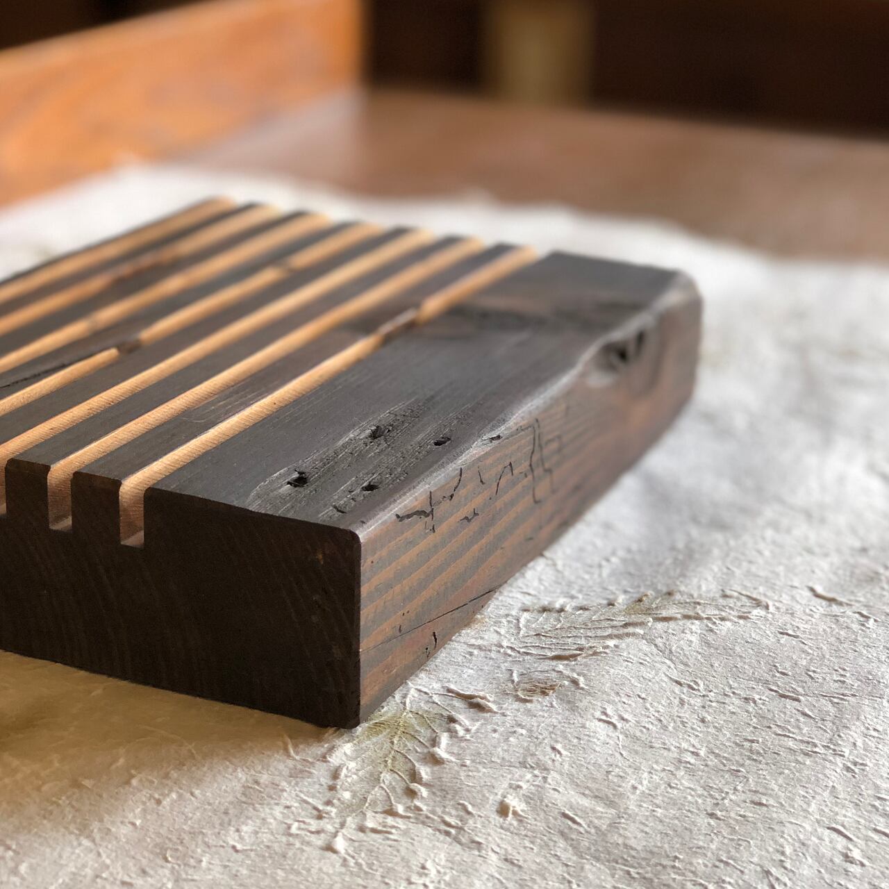 はくたけの古材小物は、古材の持つ傷や節を味としてとらえ、