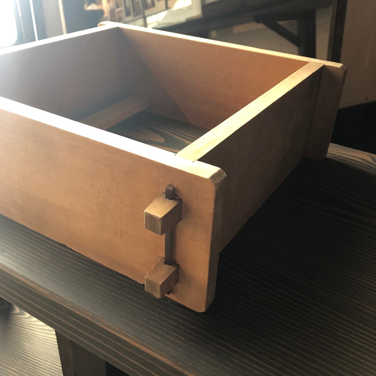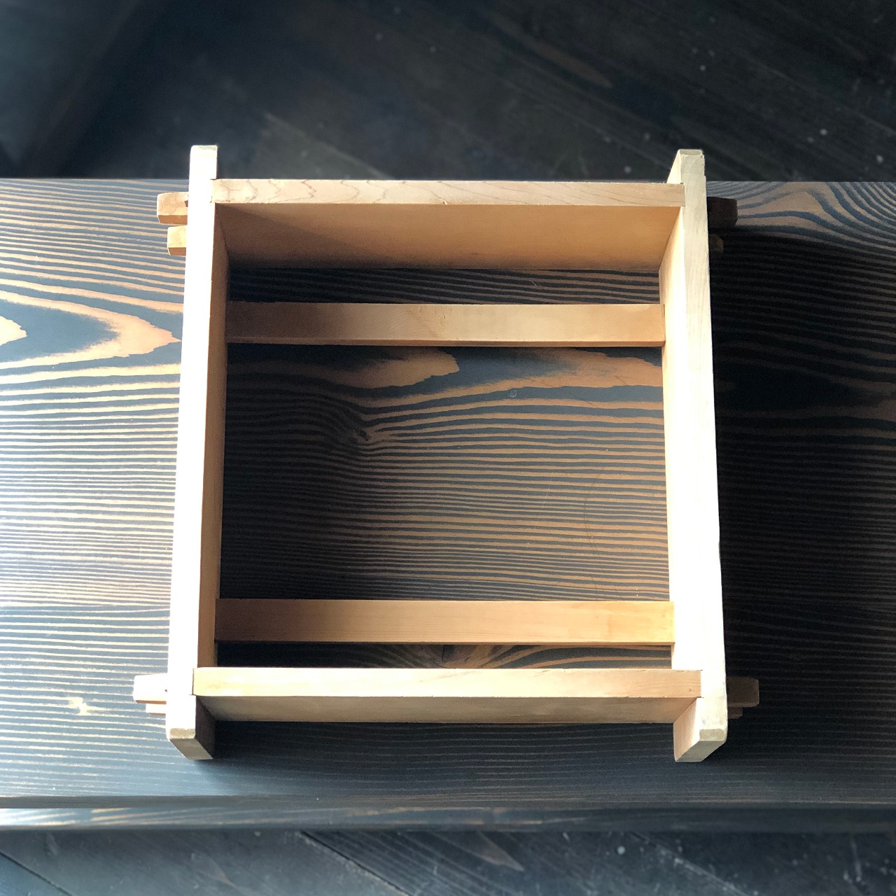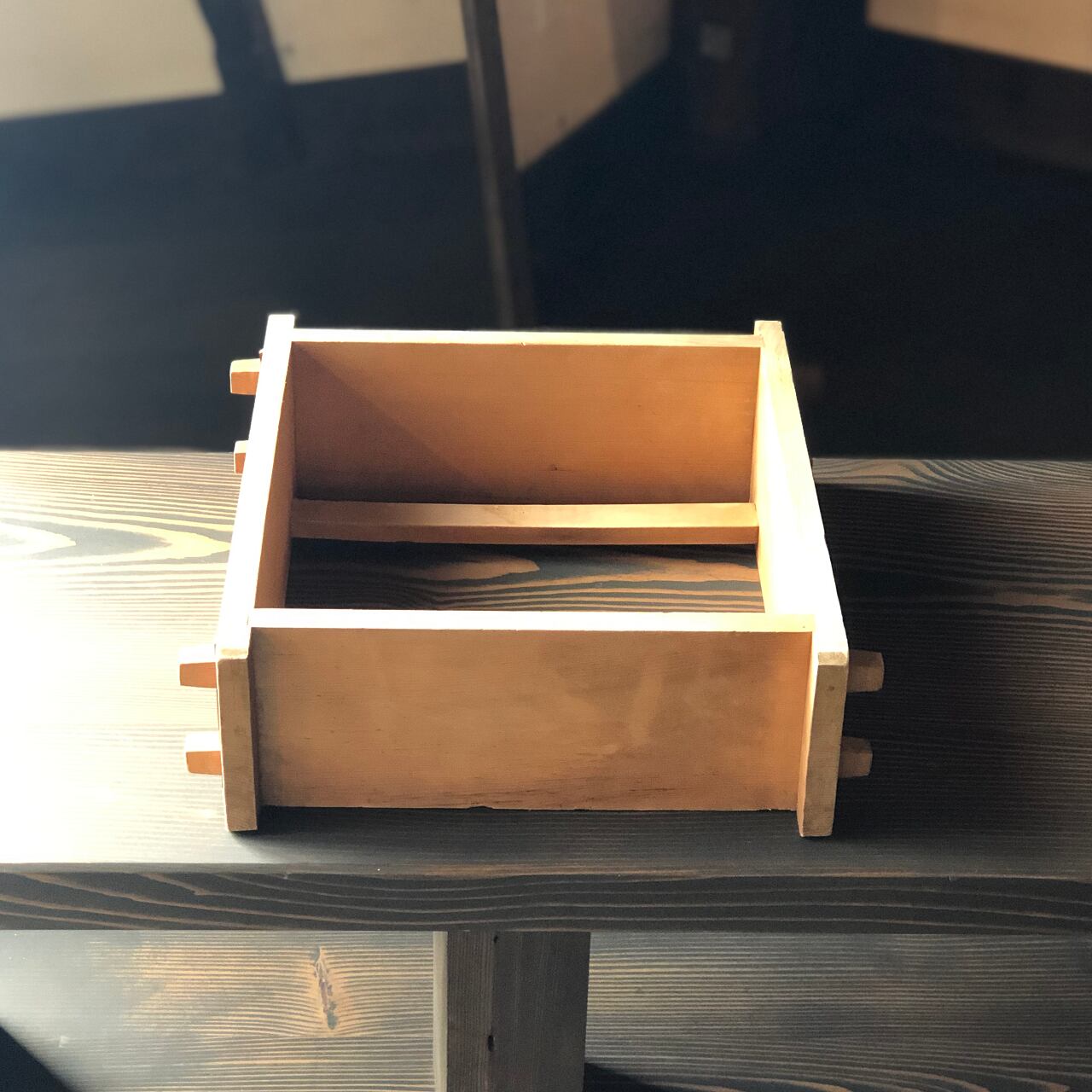 はくたけの実店舗では、古材色に塗装し、飾り棚として壁にディスプレイしています。