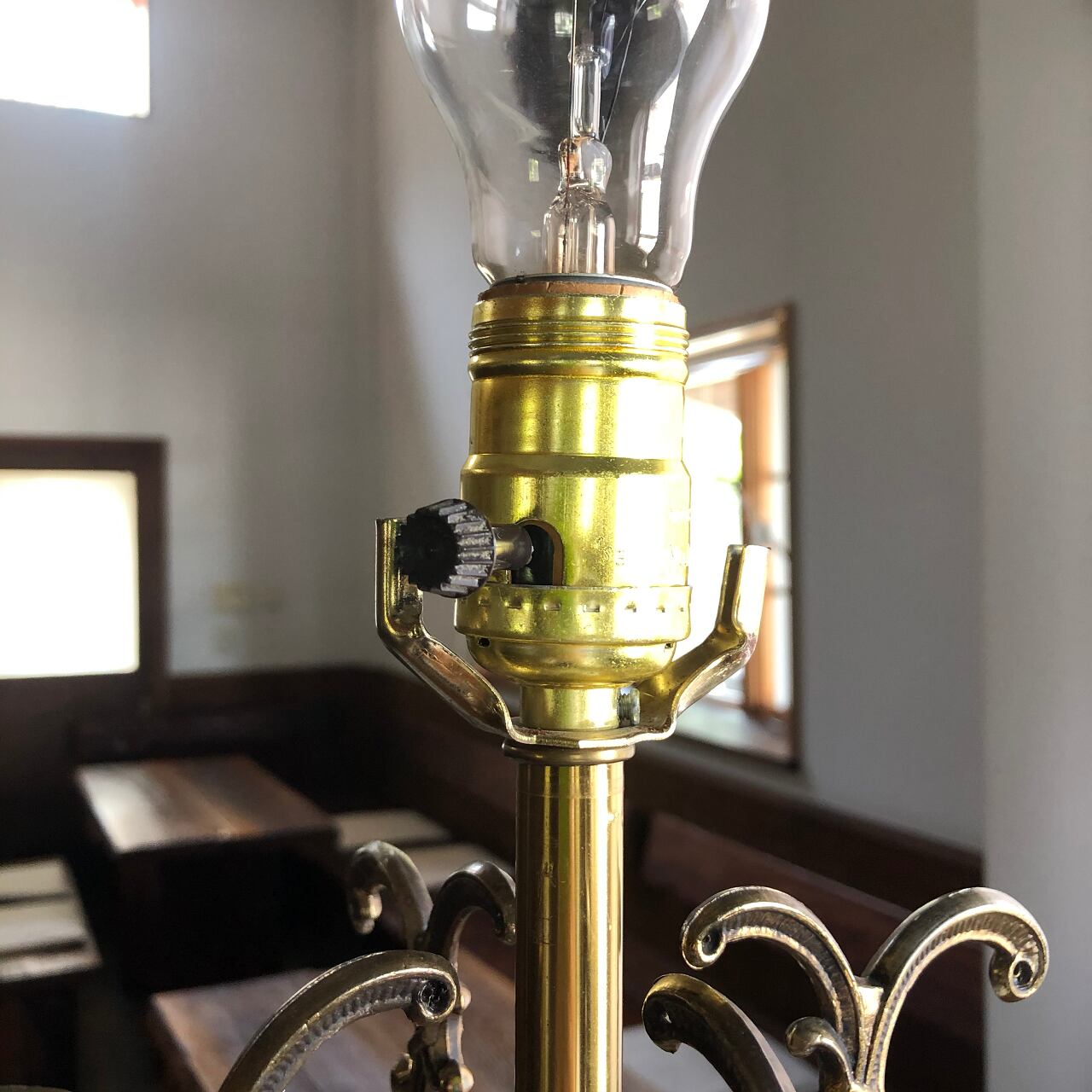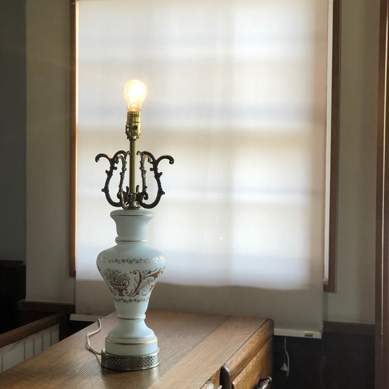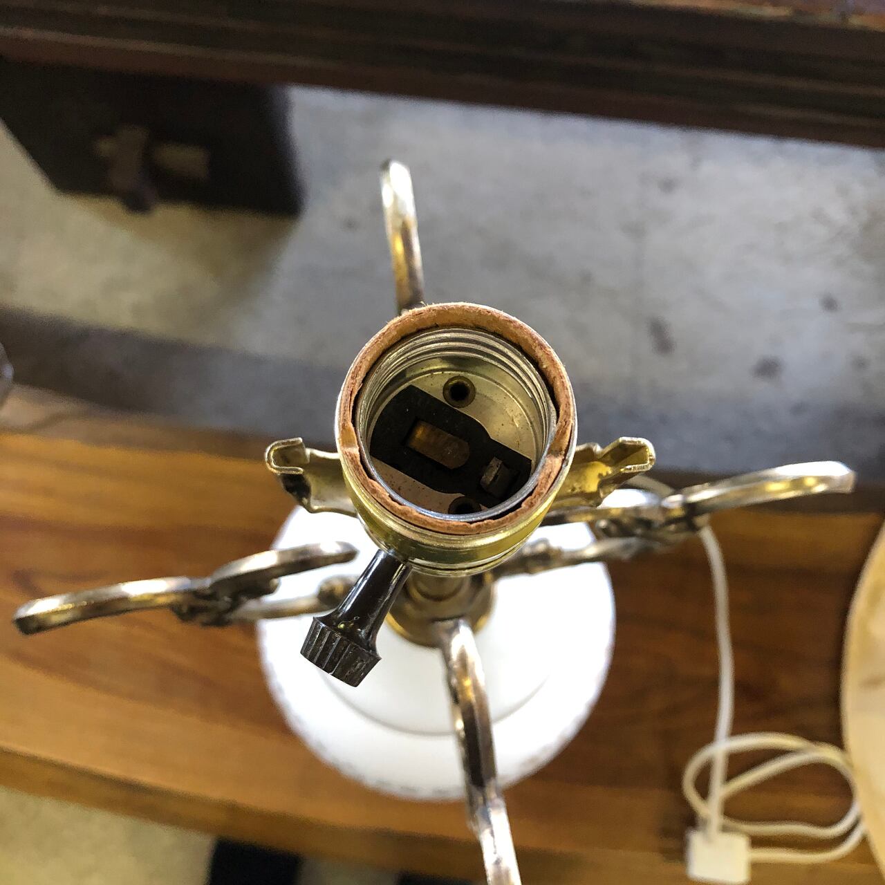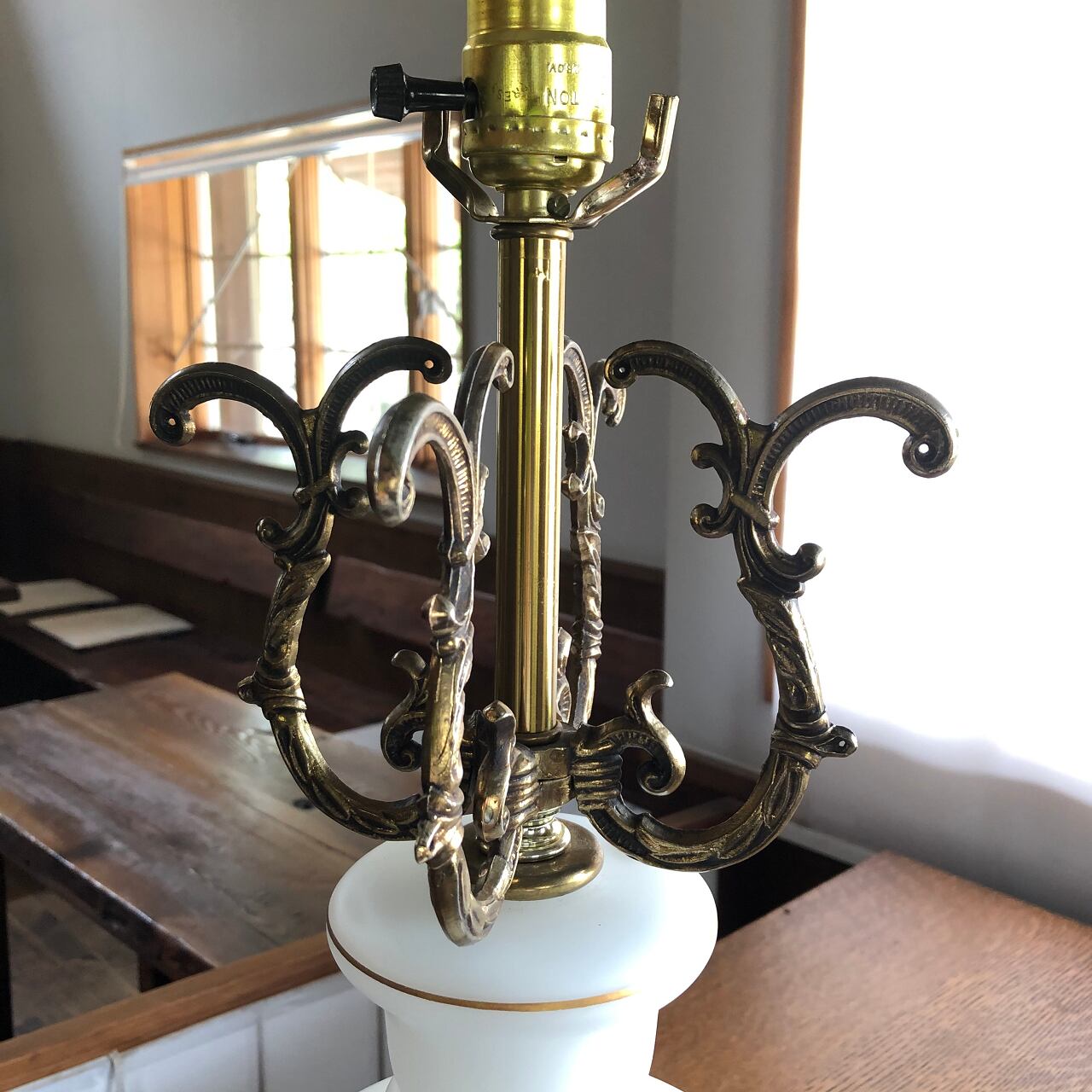 繊細な細工の真鍮と乳白硝子の組合せが品良く、年代物の高級感があります。