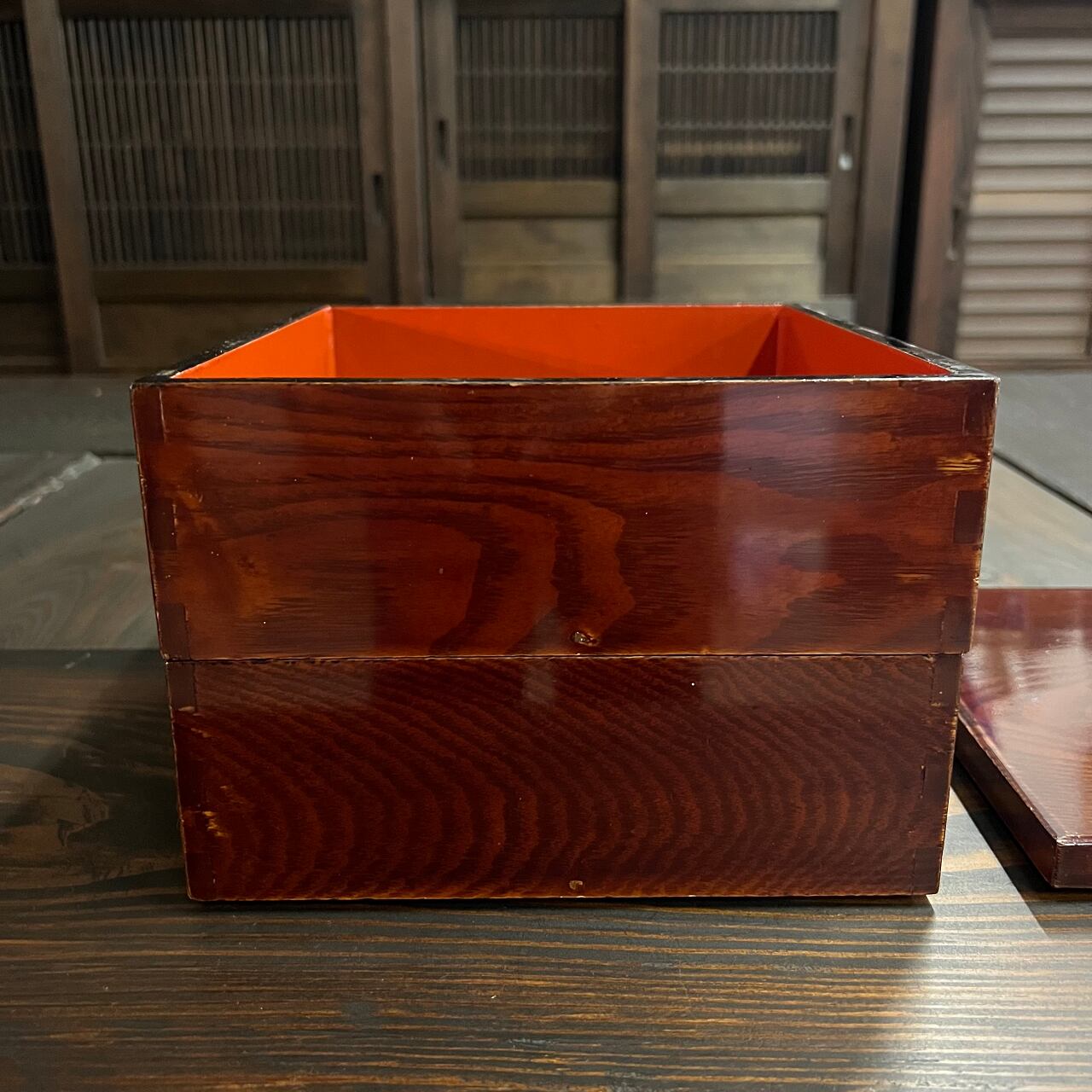 木目の美しい内朱漆の2段重箱(アンティーク)